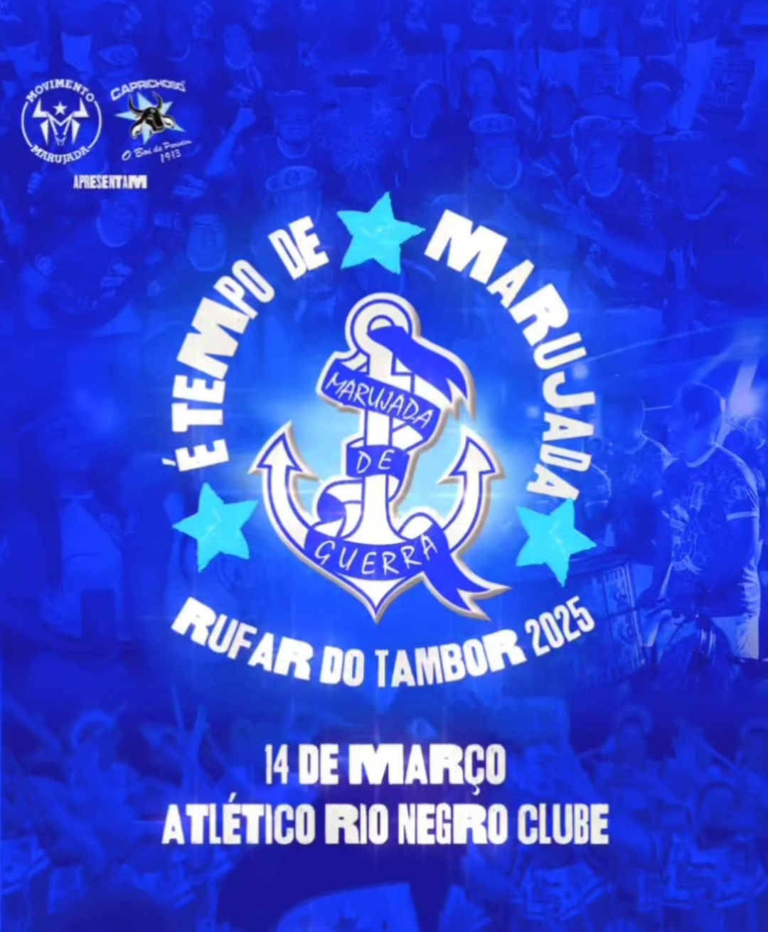 A Nação Caprichoso se prepara para um momento especial! O primeiro Rufar do Tambor da temporada promovido pelo Movimento Marujada, está marcado para o dia 14 de março, no Atlético Rio Negro Clube, prometendo uma noite repleta de animação e celebração.